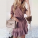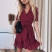 You have no need to worry about what to wear for your daily out and night dating if you have this printed dress in your team. The v-neck and ruffle hem design will showcase your sweet yet feminine side,while the waist strap design will highlight your figure. Any girl can look effortlessly charming and beautiful in this dress. So why not buy one?