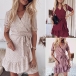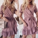 Sweet Style Short Sleeve V-neck Ruffle Hem Printed Dress