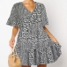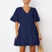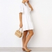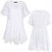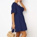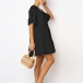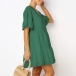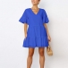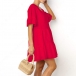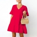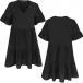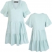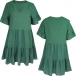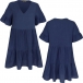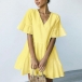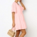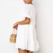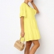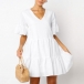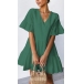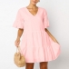 Sweet Style Short Sleeve V-neck Ruffle Hem Solid Color Loose Dress