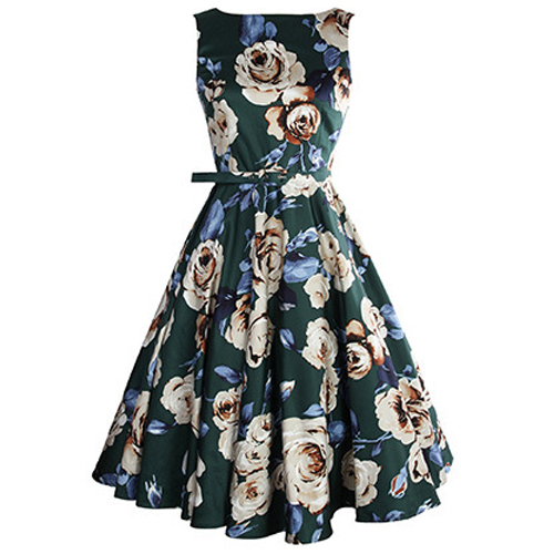 print,with sleeveless,round neck and gathered waist design,this dress makes it easy for any girl to look