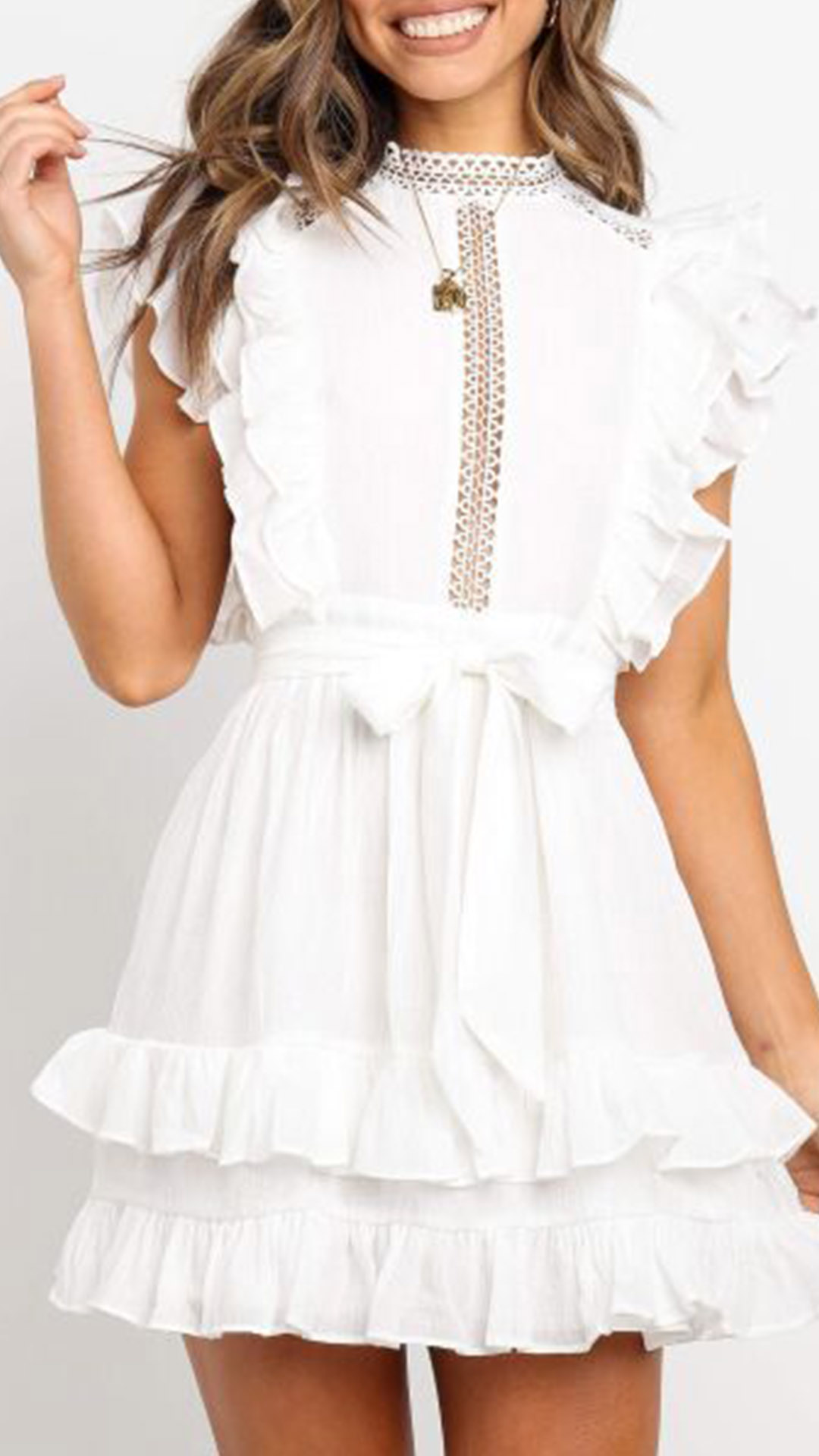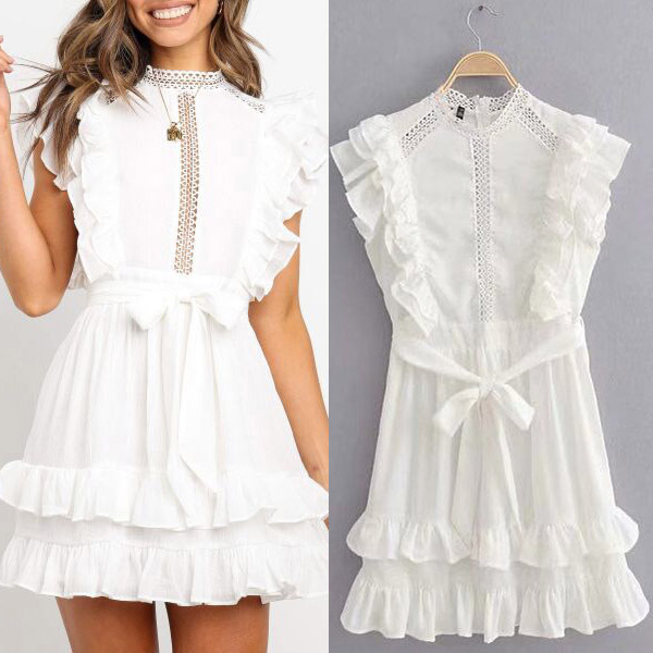 When you have this dress in your team,you can easily achieve for a sweet and stylish daily style. Solid color style,the ruffle design can make you look more charming and attractive. Finished with sleeveless,round neck and high waist design,this cake dress is perfect fit for different occasions.