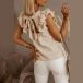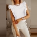 Only need one glance,you would be attracted by this chic and fashion top. Boasts a solid color,with sleeveless and round neck design,this piece can ensure you a comfortable day with its soft and breathable fabric. What's more,the ruffle design will lend you a dash of sweet yet charming vibes. So why not take interest in it?