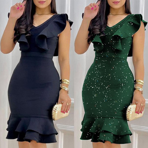 When you wanna express your sweet yet feminine side,then you can just slip into this sleeveless dress. The high waist and fit silhouette design can better showcase your slender figure,while the ruffle design at the hem and cuff part will make this piece look more attractive. Just save this beautiful dress for your fancy events.