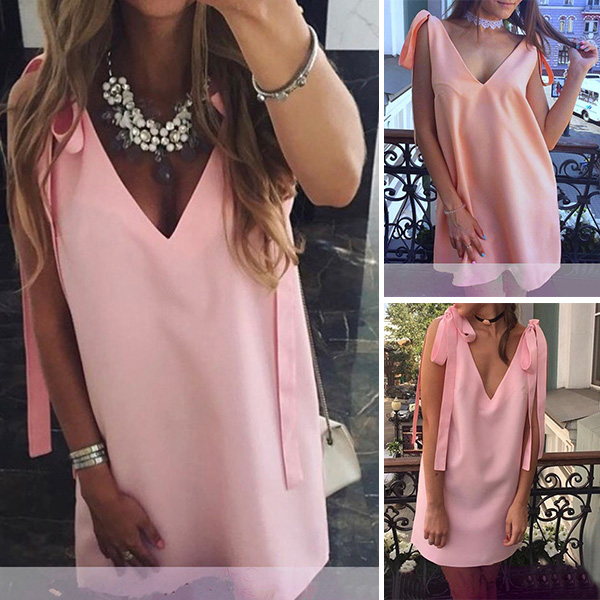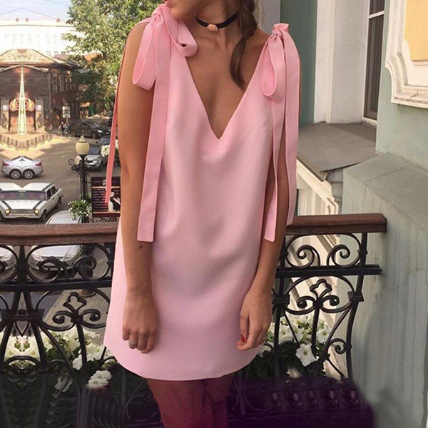 For a sweet yet feminine style,you can count on this dress. It features a sweet pink tone,accompanied with sleeveless,