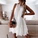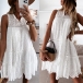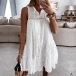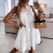 Sweet Style Sleeveless V-neck Solid Color Hollow Out Lace Loose Dress