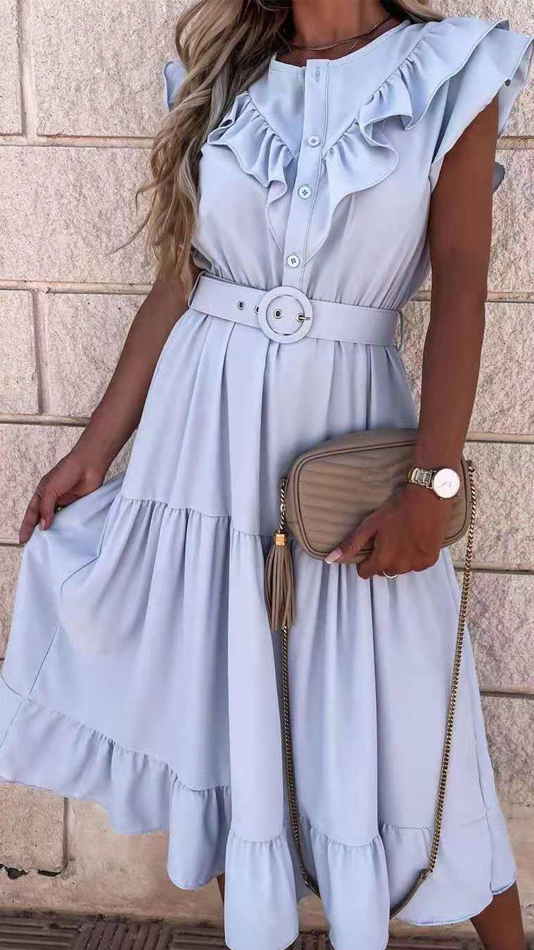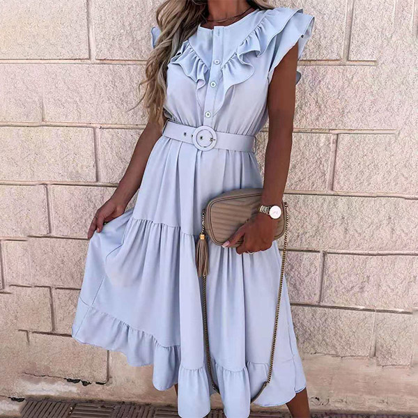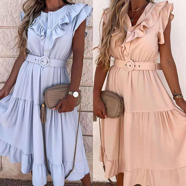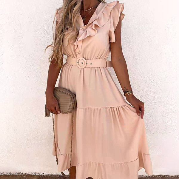 Effortless style does not require great skill, all it takes is the knack for sticking to basic pieces that are wearable to various occasions. This chic dress is one fine example. With solid color,v-neck and ruffle design,this number is a wise investment as you can wear it for various occasions. And the waistband design will further enhance its entire charm. Like it? Then buy one!