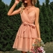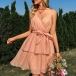 Sweet Style Solid Color V-neck Self-tie Tiered Slip Dress