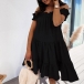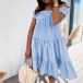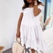 When you wanna exude your sweet yet flirty vibes,then you can just throw yourself into this dress. The boat neck with stringy selvedge design is the highlight,which makes this piece look so attractive. Meanwhile,its soft fabric and loose silhouette design can ensure you a comfortable day. You can embrace your sunny days with this delightful dress.