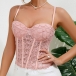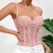 Sweet Style Sweetheart neckline Lace Pink Corset Shirt