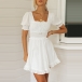 Sweet Style Swiss-dot Short Sleeve Ruffle Backless Dress