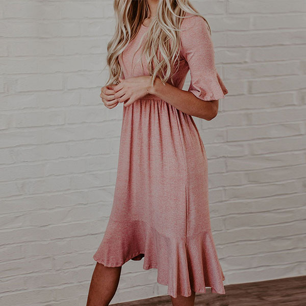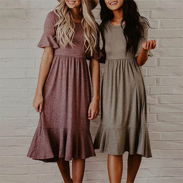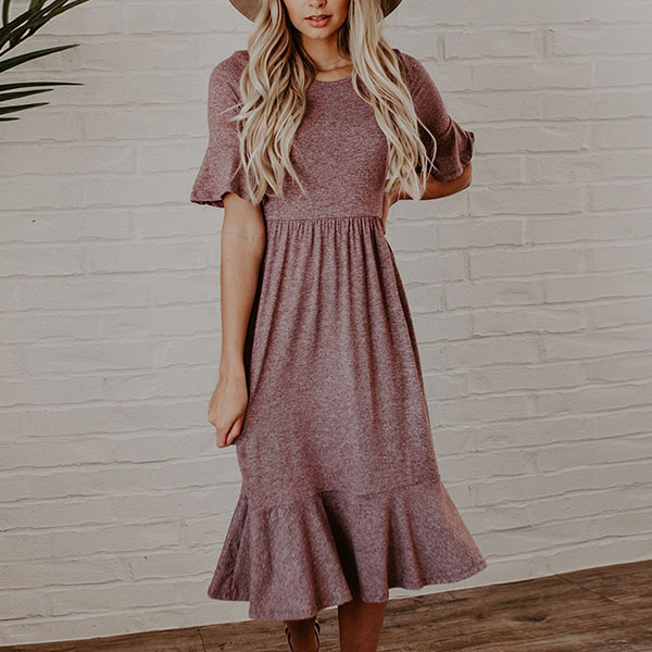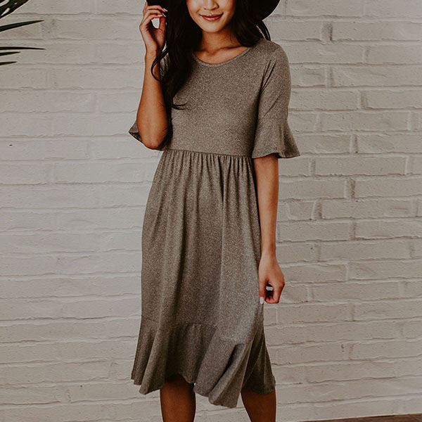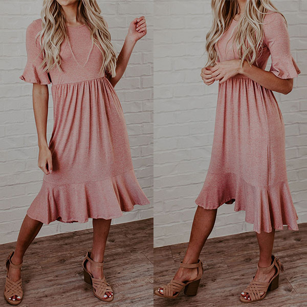 From your daytime out to night dating,this stylish and delicate dress can offer you a perfect transition. Solid color style,the trumpet sleeve and ruffle hem design can easily enhance its sweet and feminine vibes. Dress it up with your favourite heels for a beautiful look.