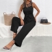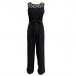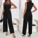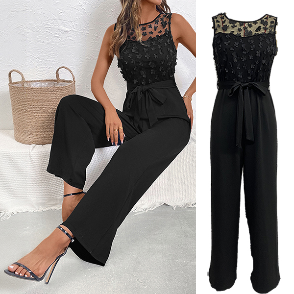 Fashion Crew Neck Sleeveless 3D Floral Jacquard Self-tie Straight-cut Jumpsuit