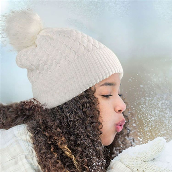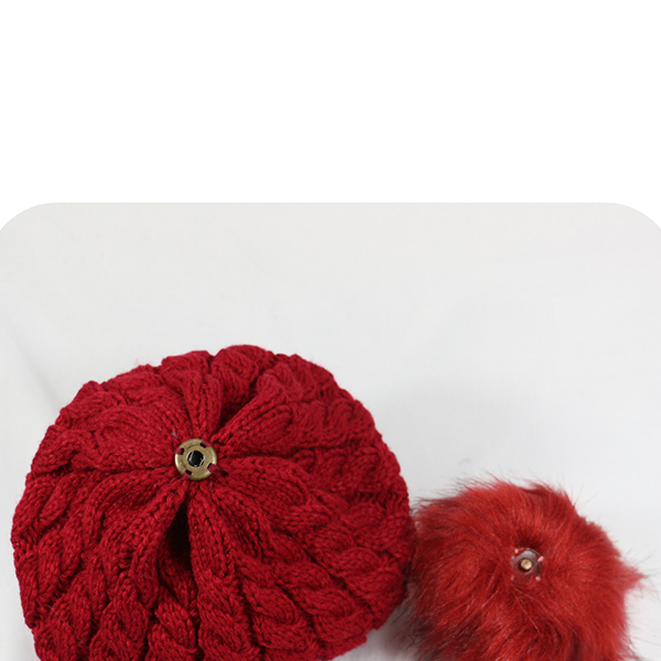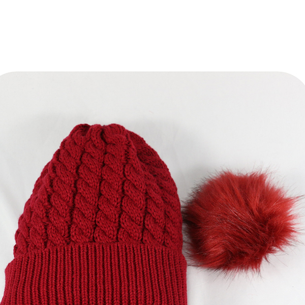 Thermal Winter Beanie Cable Knitting with Detachable Pom-pom