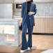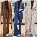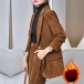 Blazer + pantalon en velours côtelé épais de style casual mi-longs