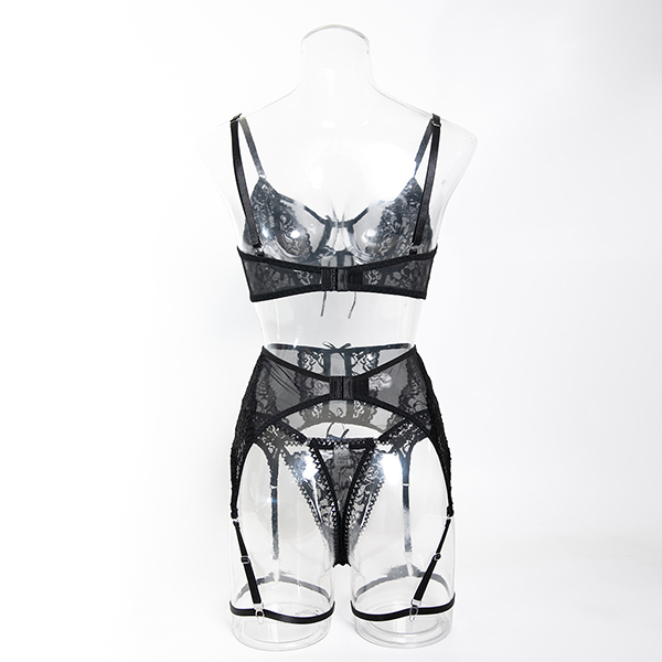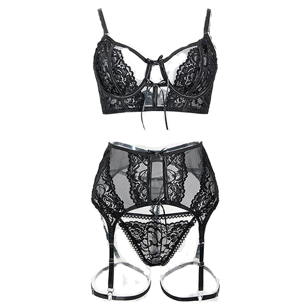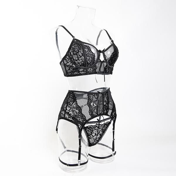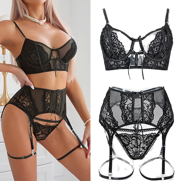 Three-Piece Jacquard Lace Lingerie Set for Women