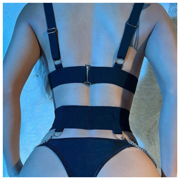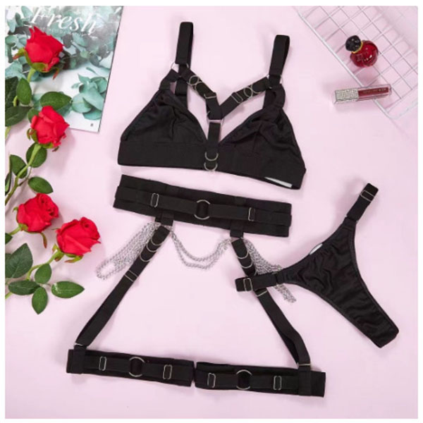 Three-Piece Suspender Underwear featuring Metal Chain Accents
