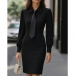 Elegant Stand Collar Long Sleeve Bodycon Dress with Tie