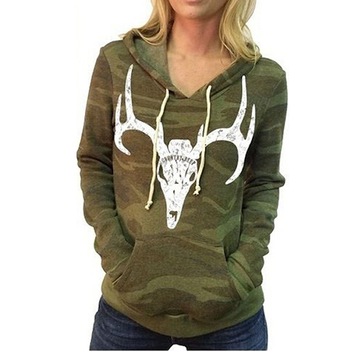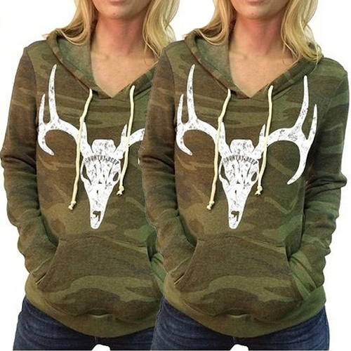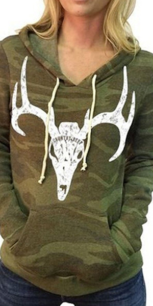 with long sleeve, hooded, front pocket and camouflage printed design, this sweatshirt can