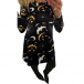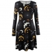 Trendy Moon Bat Printed Round Neck Long Sleeve Dress