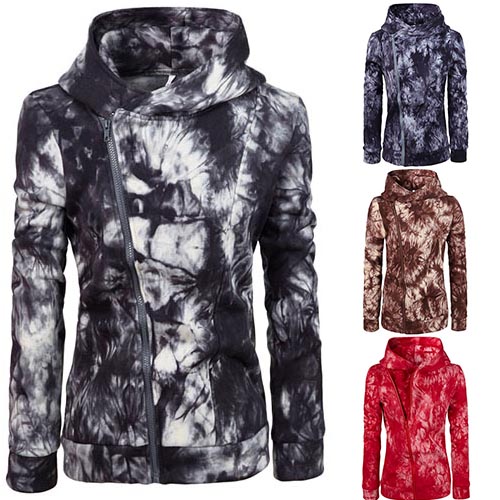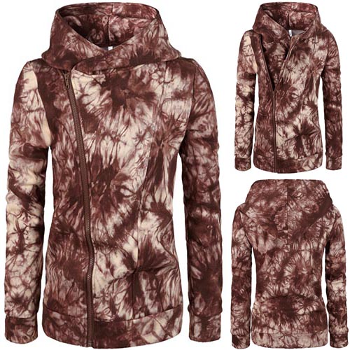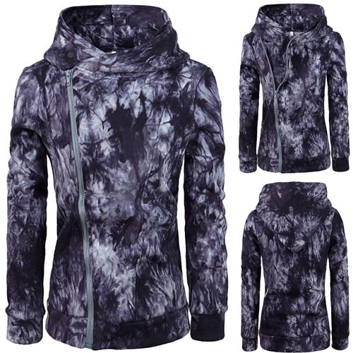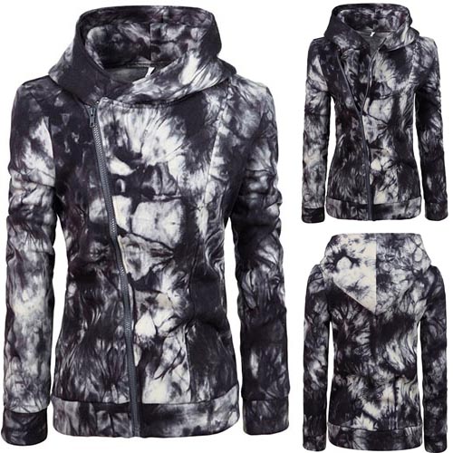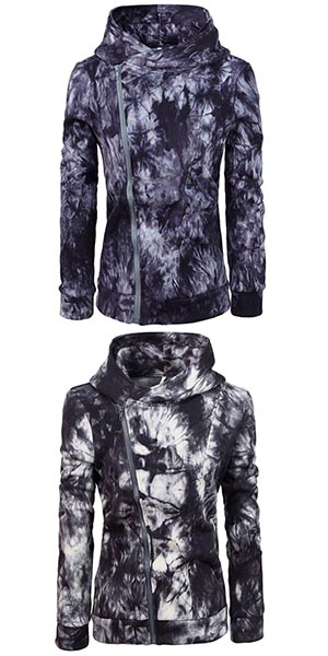 all-over prints design details. Owning eye-catching printed style, with hooded, long sleeve and oblique