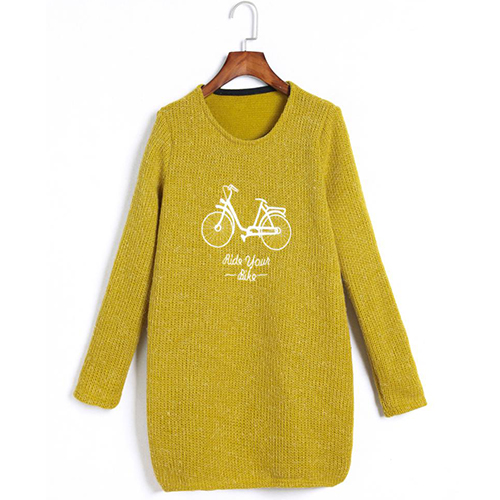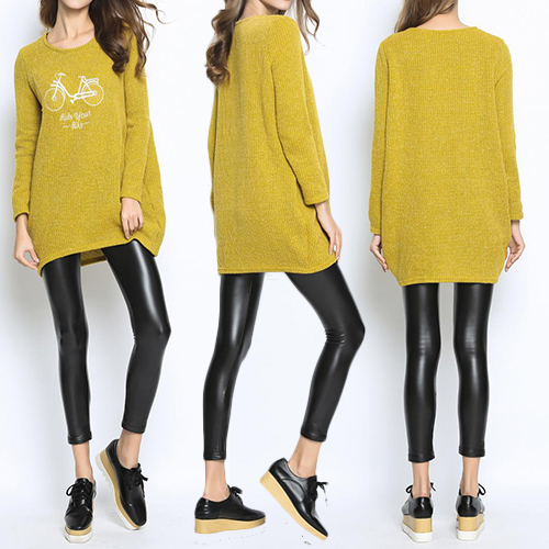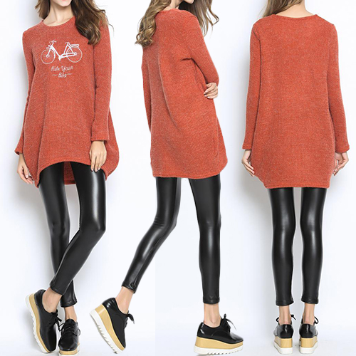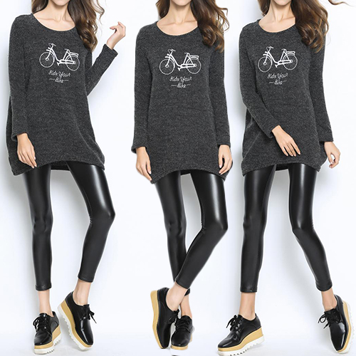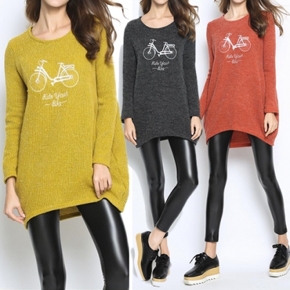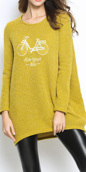 with bike printed pattern, round neck, long sleeve and high-low hemline design, bringing you