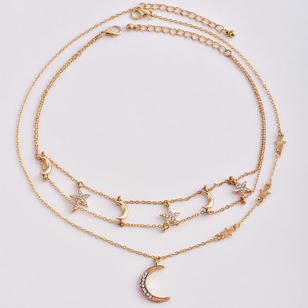 which show your neck’s beauty, cast in another rolo chain with a crescent moon pendant,