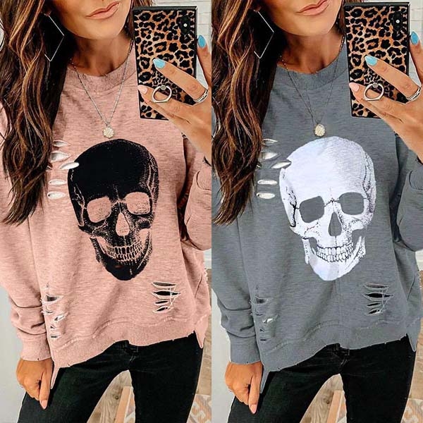 prined with skull pattern and ripped detail at the front for eye-catching and trendy appeal,