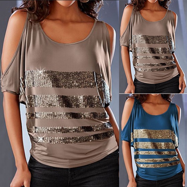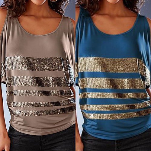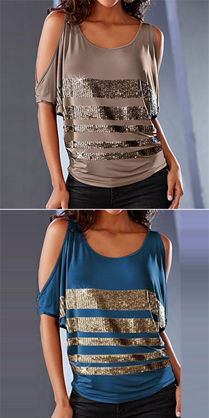 neck design perfect emphasizes your charming shoulder and clavicle. Its sequin striped design