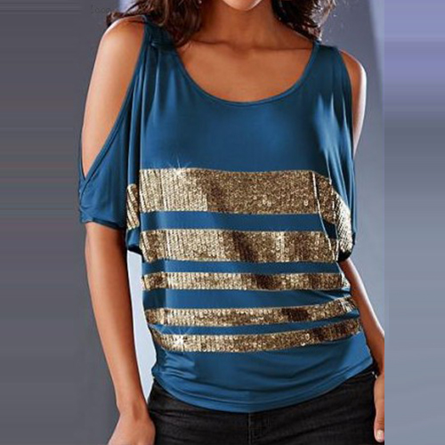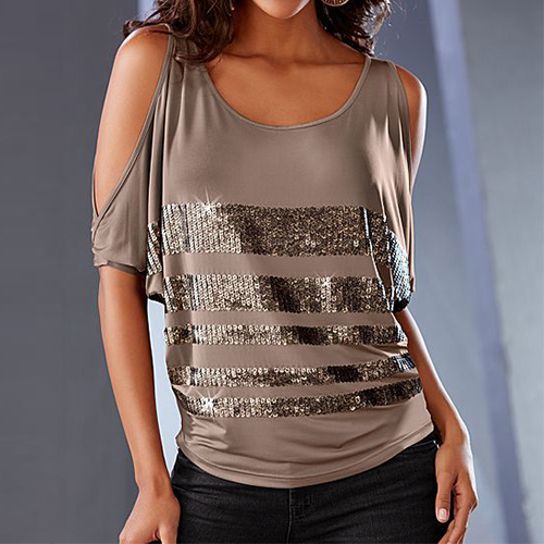 Your sheer feminine alluring would be shown thoroughly via this T-shirt. Cold shoulder and round