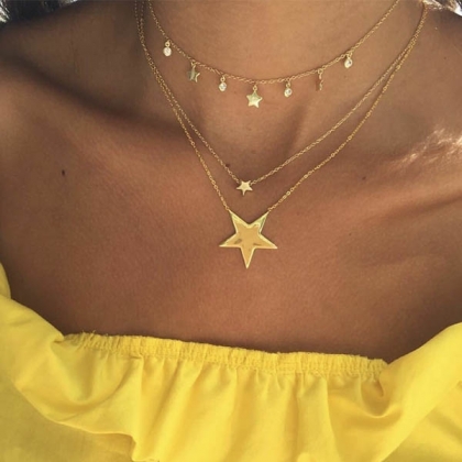 This pentagram pendant muti-layer necklace was designed to reflect the captivating beauty.