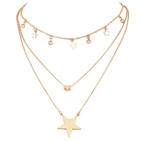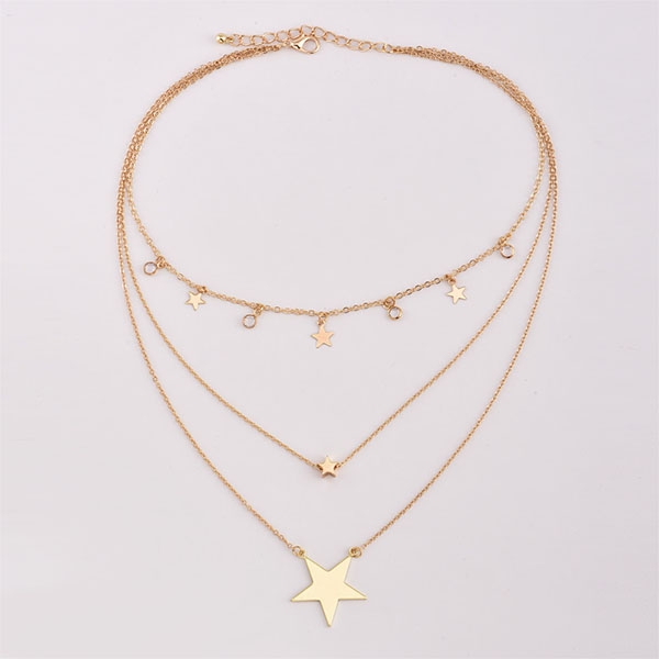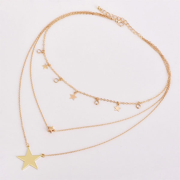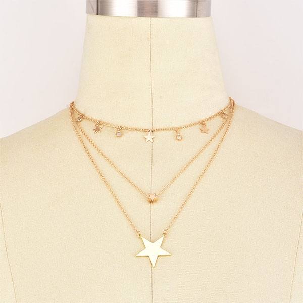 Trendy Style Pentagram Pendant Muti-Layer Necklace