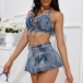 Two-Piece Denim Set: Crop Top and High-Waisted Tutu Skirt with Shorts