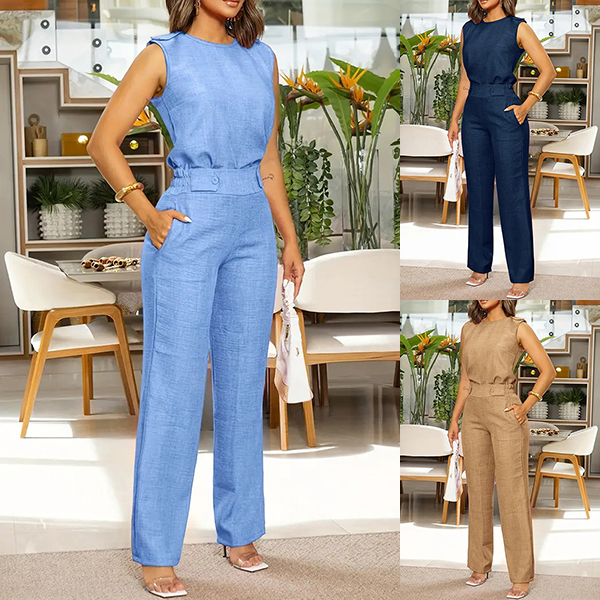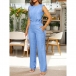Fashion Solid Color Two-piece Set Consist of Sleeveless Shirt and Straight-cut Pants