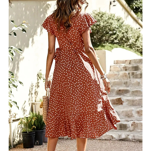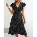 Fashion Dot Printed V-neck Cap Sleeve Wrap Dress