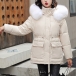 Velvet and Thickened Waist Mid Length Down Jacket