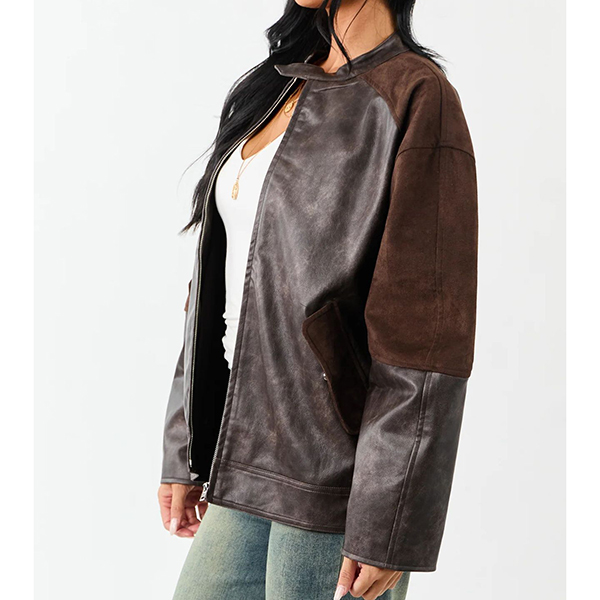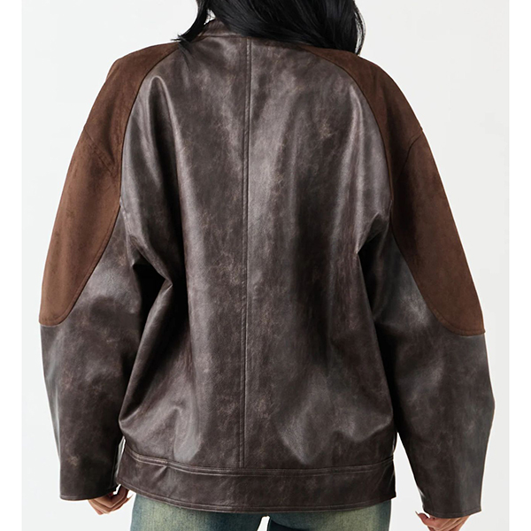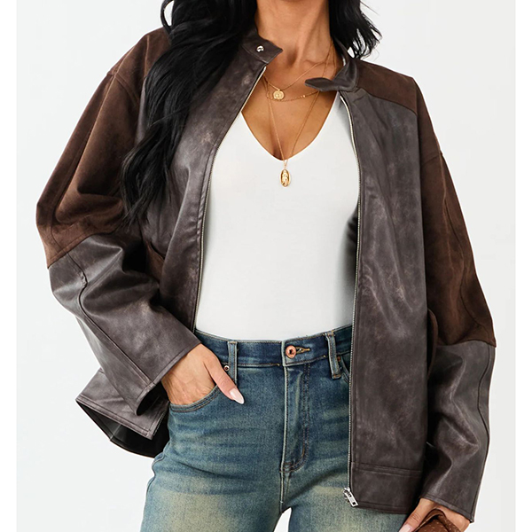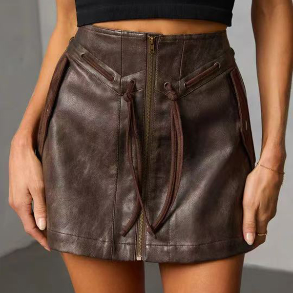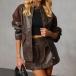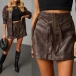 Vintage Artificial Leather PU Two-piece Set Consist of Jacket and Mini Skirt