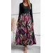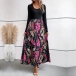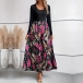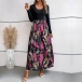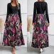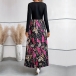 Vintage Black Bodice Round Neck Long Sleeve Floral Printed Maxi Dress