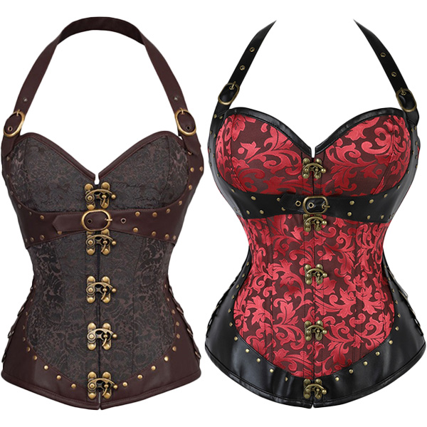 Vintage Bucket Jacquard Halterneck Corset Shirt