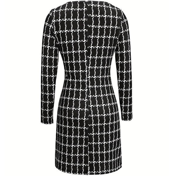 Step back in time with this vintage-inspired mini dress. The checkered pattern adds a retro touch to the dress, giving it a classic and timeless appeal. The double-breasted detailing adds a touch of elegance and adds interest to the silhouette. Pair this dress with boots for a chic and stylish ensemble that is sure to turn heads.