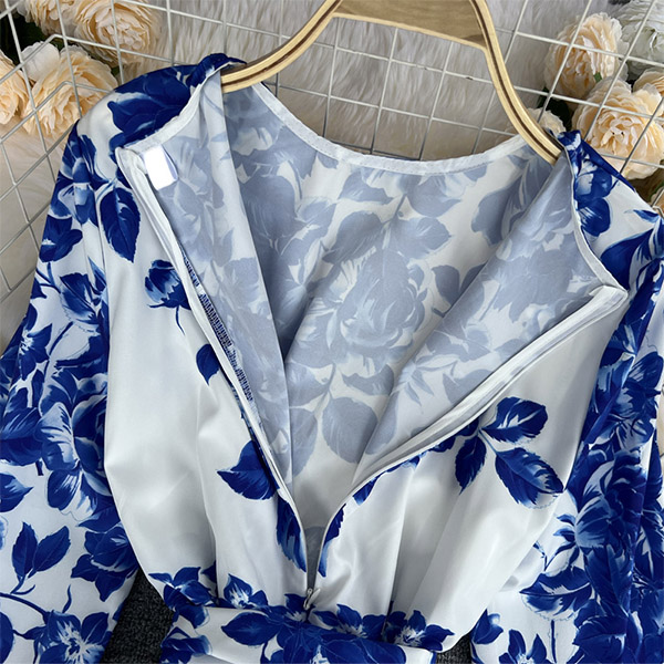 This dress has a strong classic Chinese beauty,featuring allover blue and white porcelain print,half sleeves and back zipper closure.Try pairing this dress with a pair of black heels.