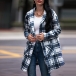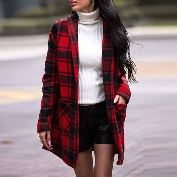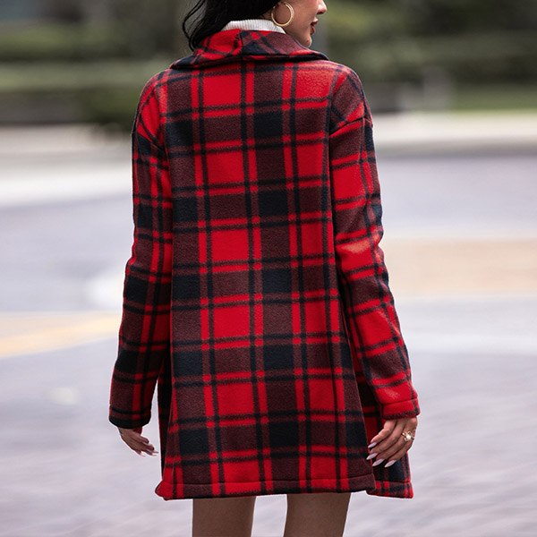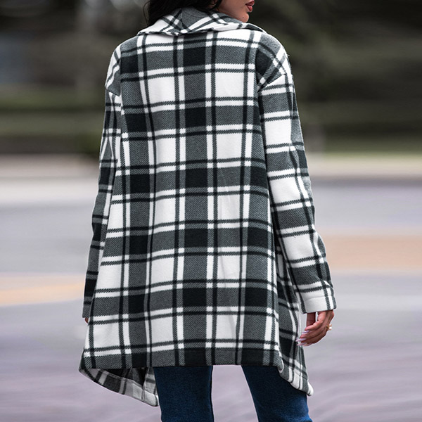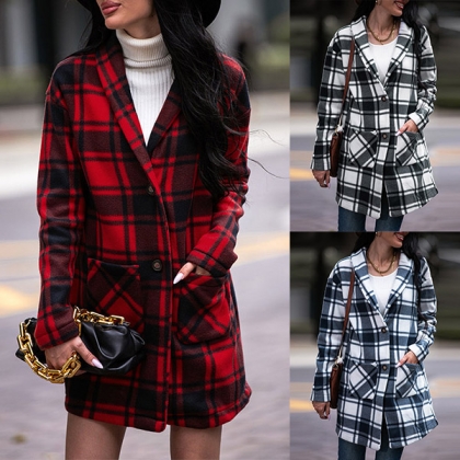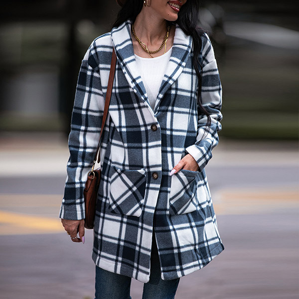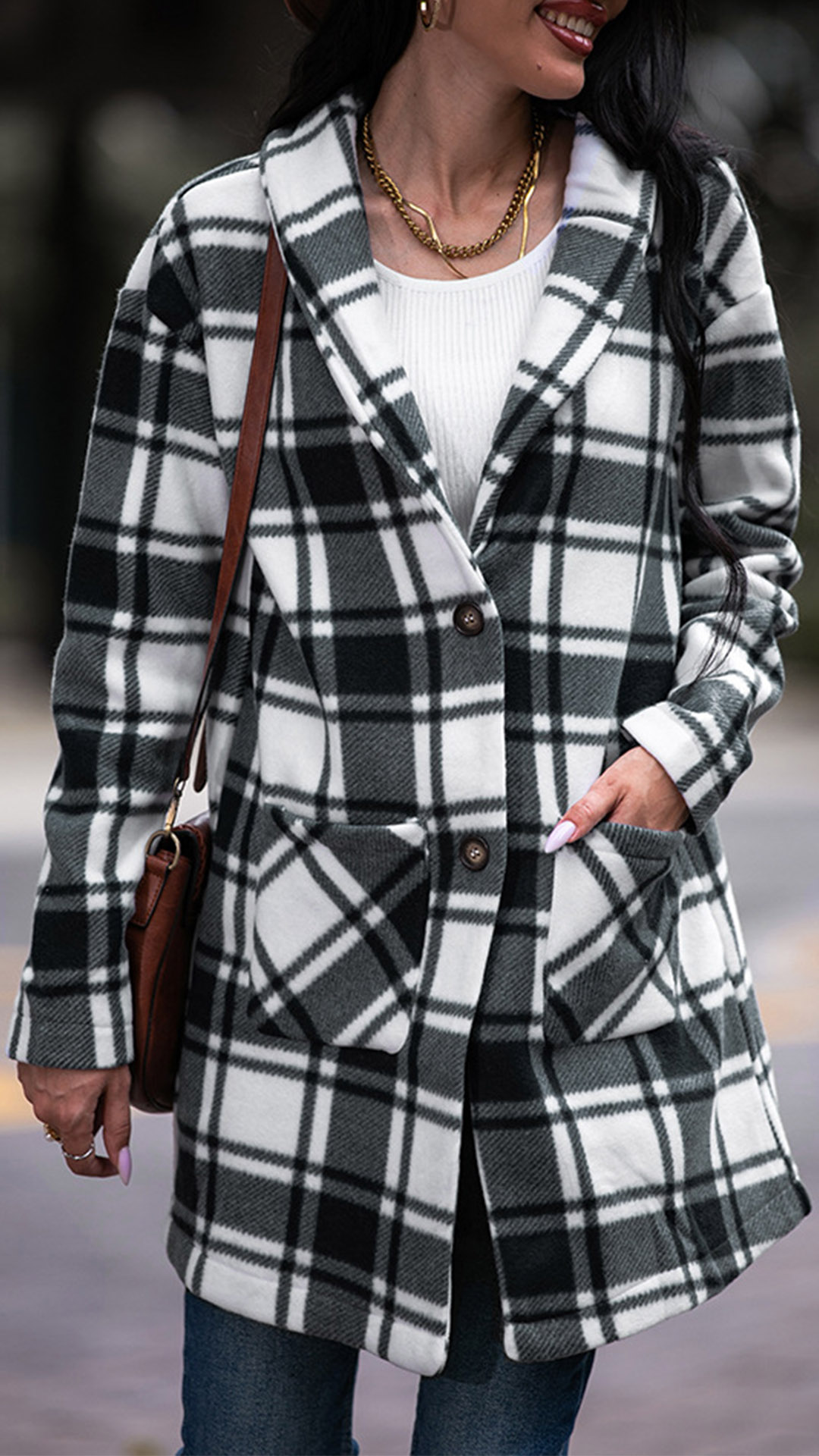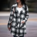 Vintage Contrast Color Checkered Lapel Long Sleeve Duffle Jacket