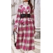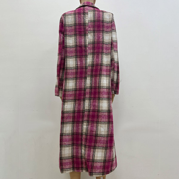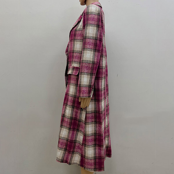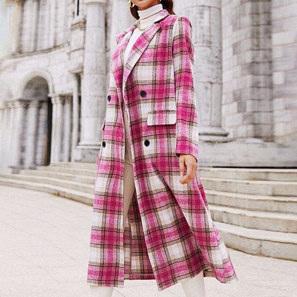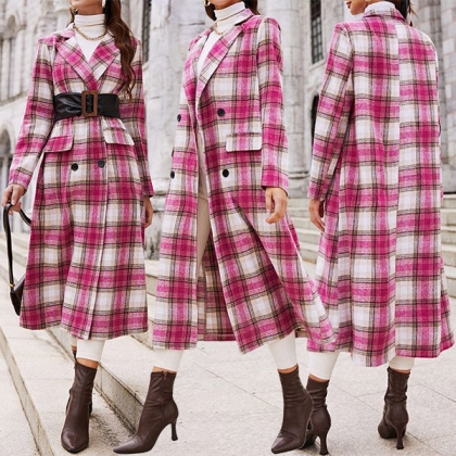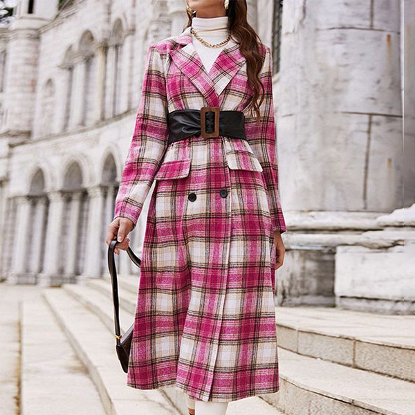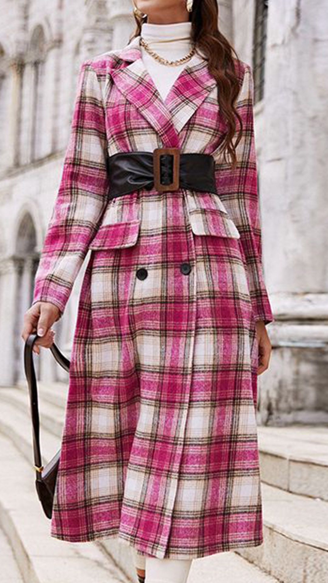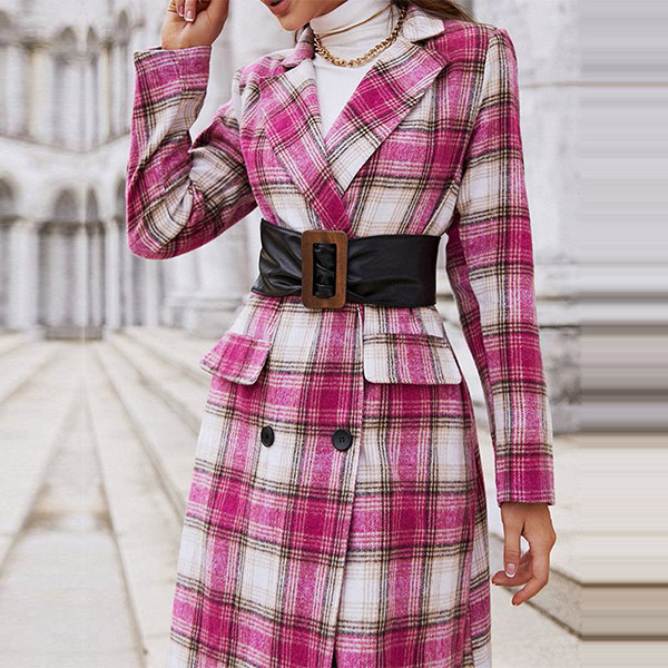 Vintage Contrast Color Notch Lapel Long Sleeve Checkered Jacket with Belt