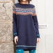 Vintage Contrast Color Printed Crew Neck Long Sleeve Sweater Dress