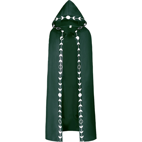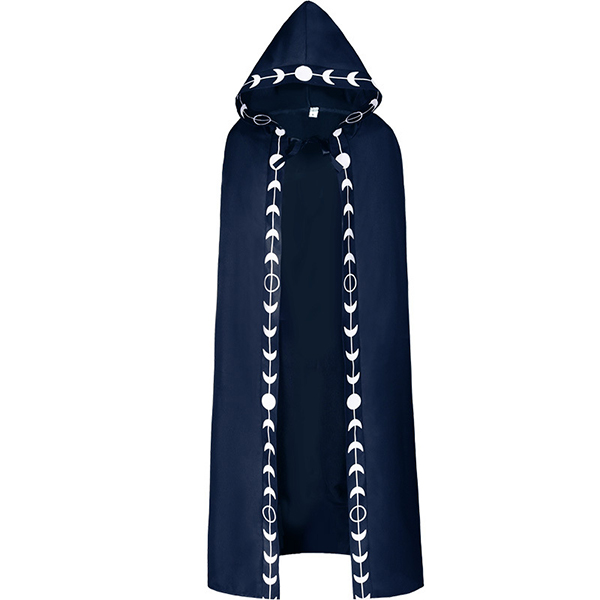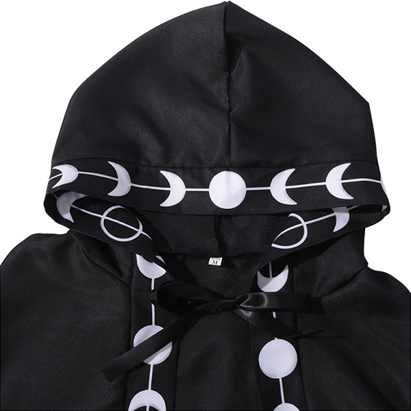 Vintage Contrast Color Printed Longline Hooded Cloak Costume for Cosplay