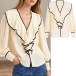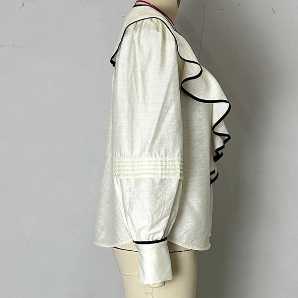 Vintage Contrast Color Ruffle Lapel Long Sleeve Shirt