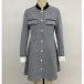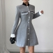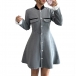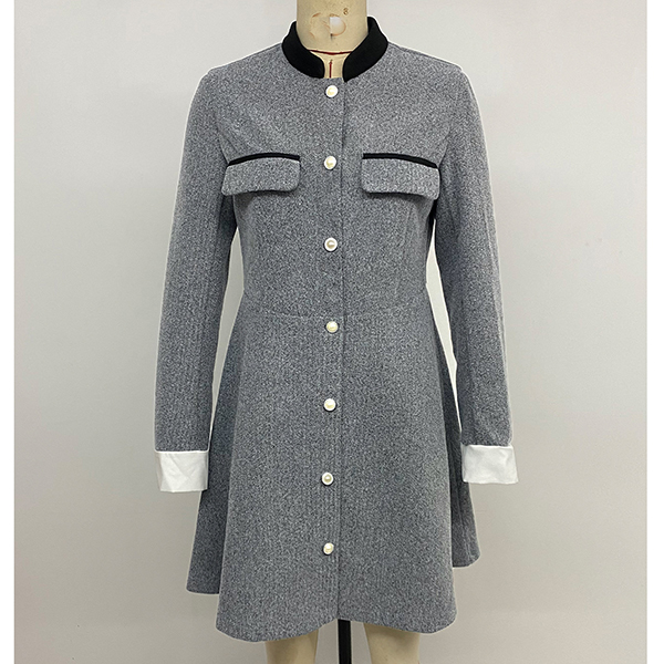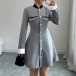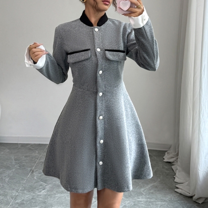 Vintage Contrast Color Stand Collar Long Sleeve Front Button Mini Dress