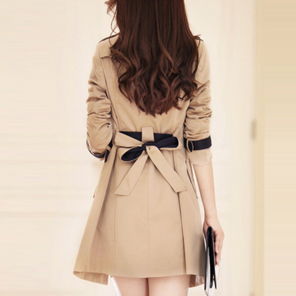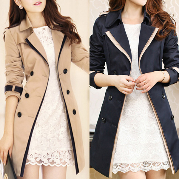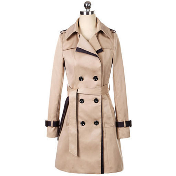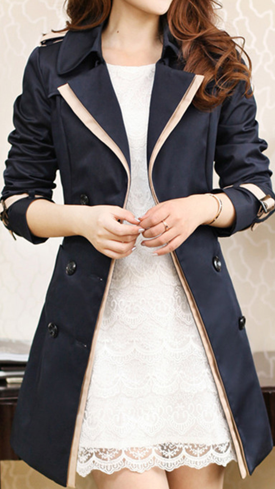 Vintage Contrast Color Stand Collar Long Sleeve Lapel Double-breasted Jacket