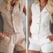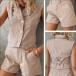 Channel effortless cool with our Vintage Denim Two-piece Set. This versatile ensemble features a tailored notch lapel vest that adds structured sophistication to casual styling, paired perfectly with coordinating denim shorts for a cohesive look. Color:White, khaki, which one do you like?