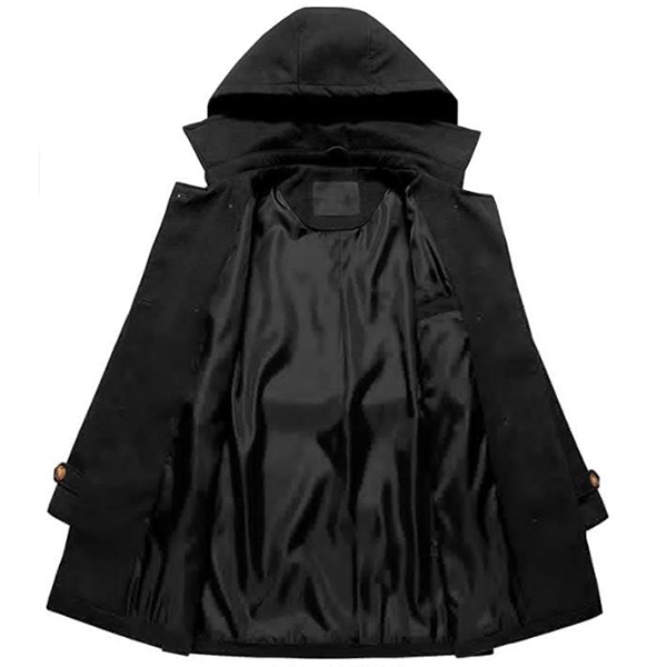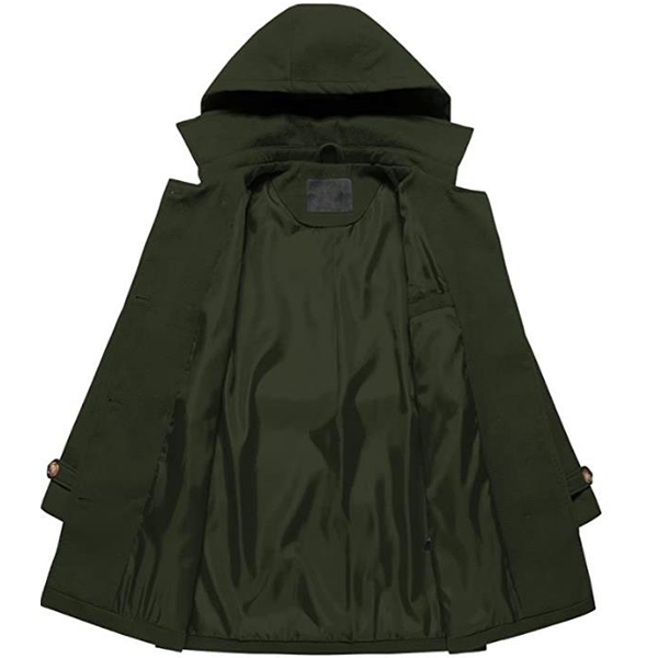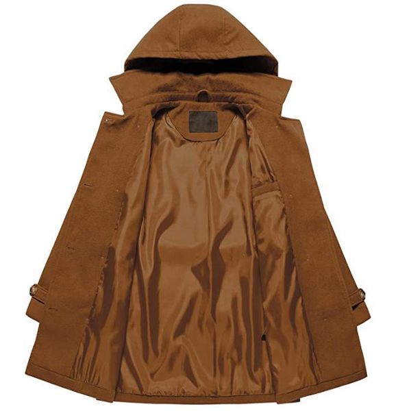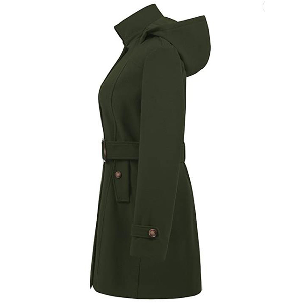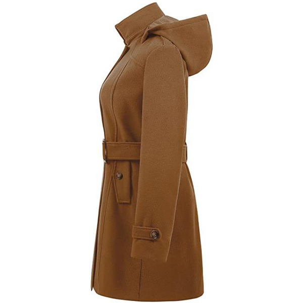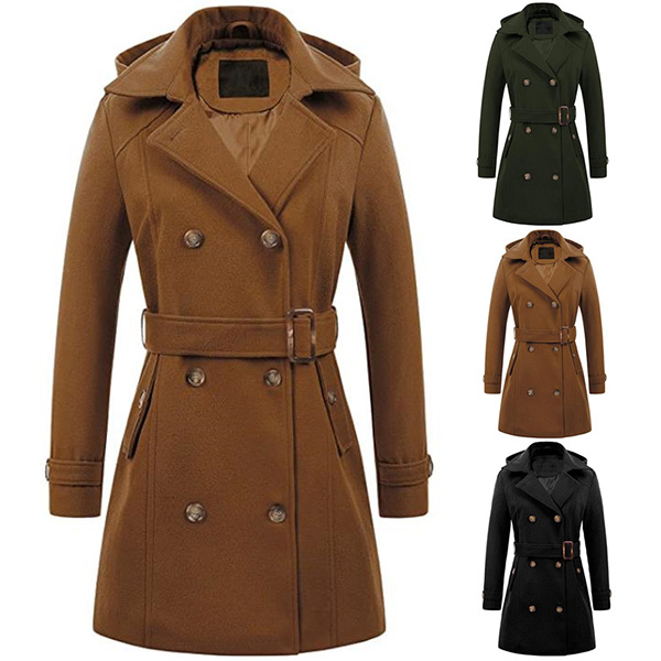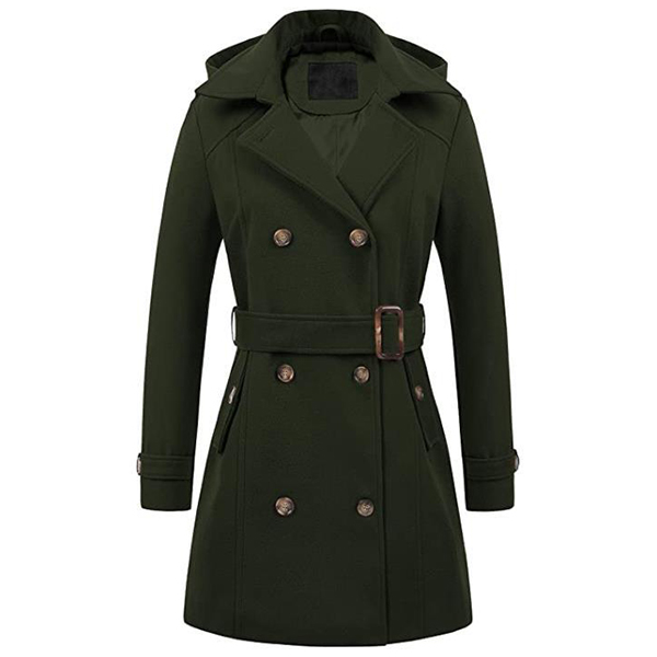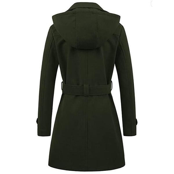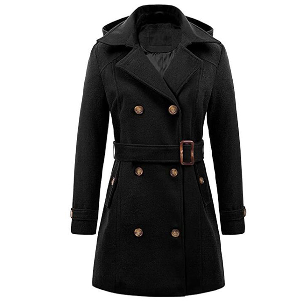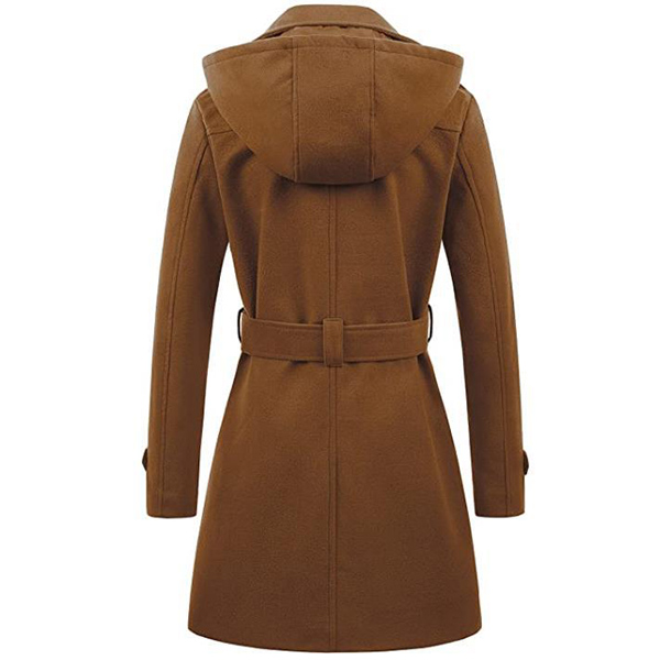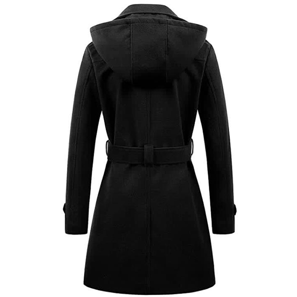 Vintage Double-breasted Notch Lapel Long Sleeve Hooded Duffle Jacket with Belt