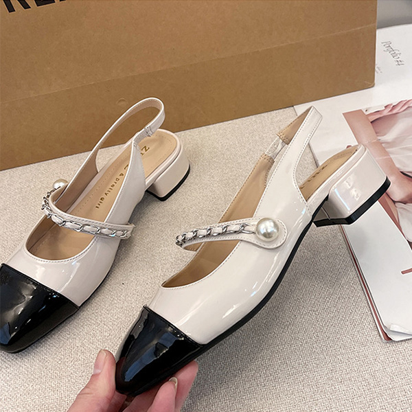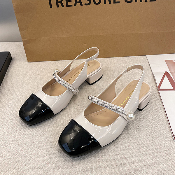 Vintage Elegant Contrast Color Pearl Sandals-Mary Jane Shoes